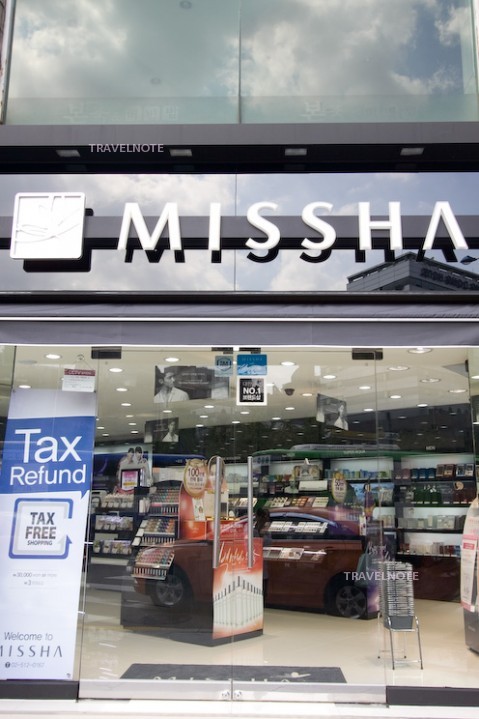 直進していくと、左手に「MISSHA」が見えます。そこの角を左折します。